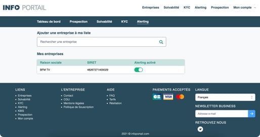 Notre outil d’alerting vous permet de suivre une liste d’entreprises qui vous souhaitez surveiller : vous serez alertés par email lors de la publication de nouveaux documents ou d’annonces légales.